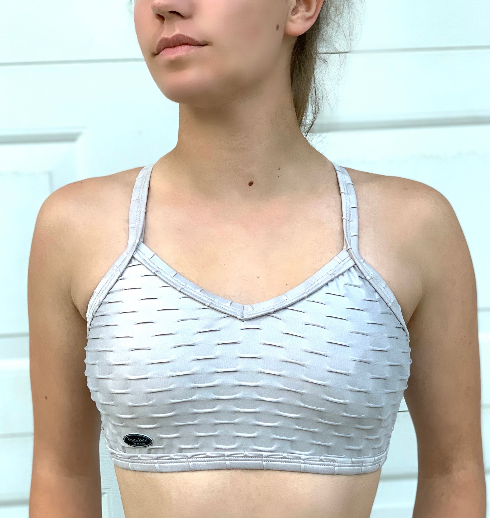 Strapped back cropped top made in Metallic Honeycomb Fabric