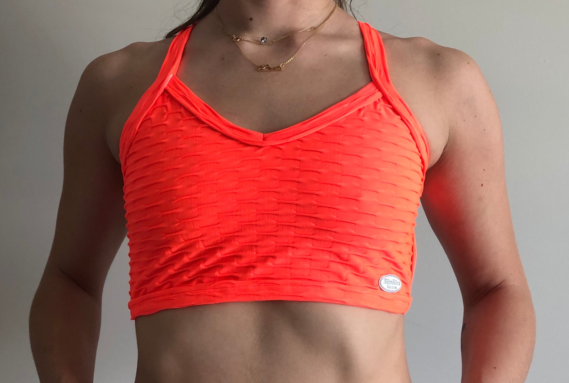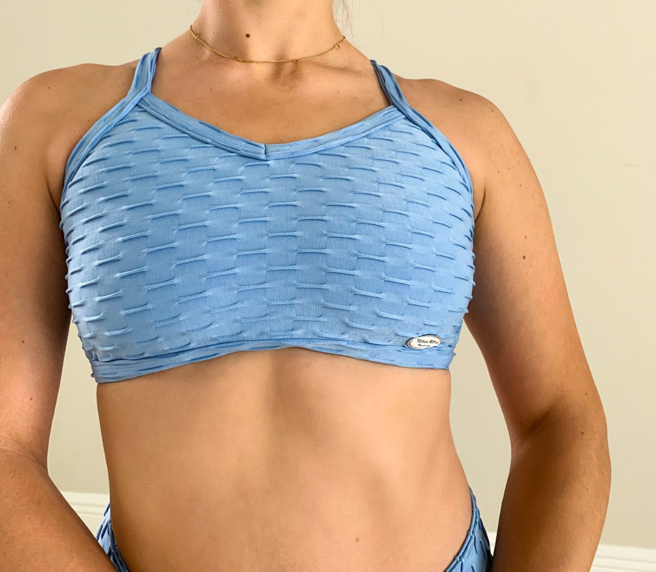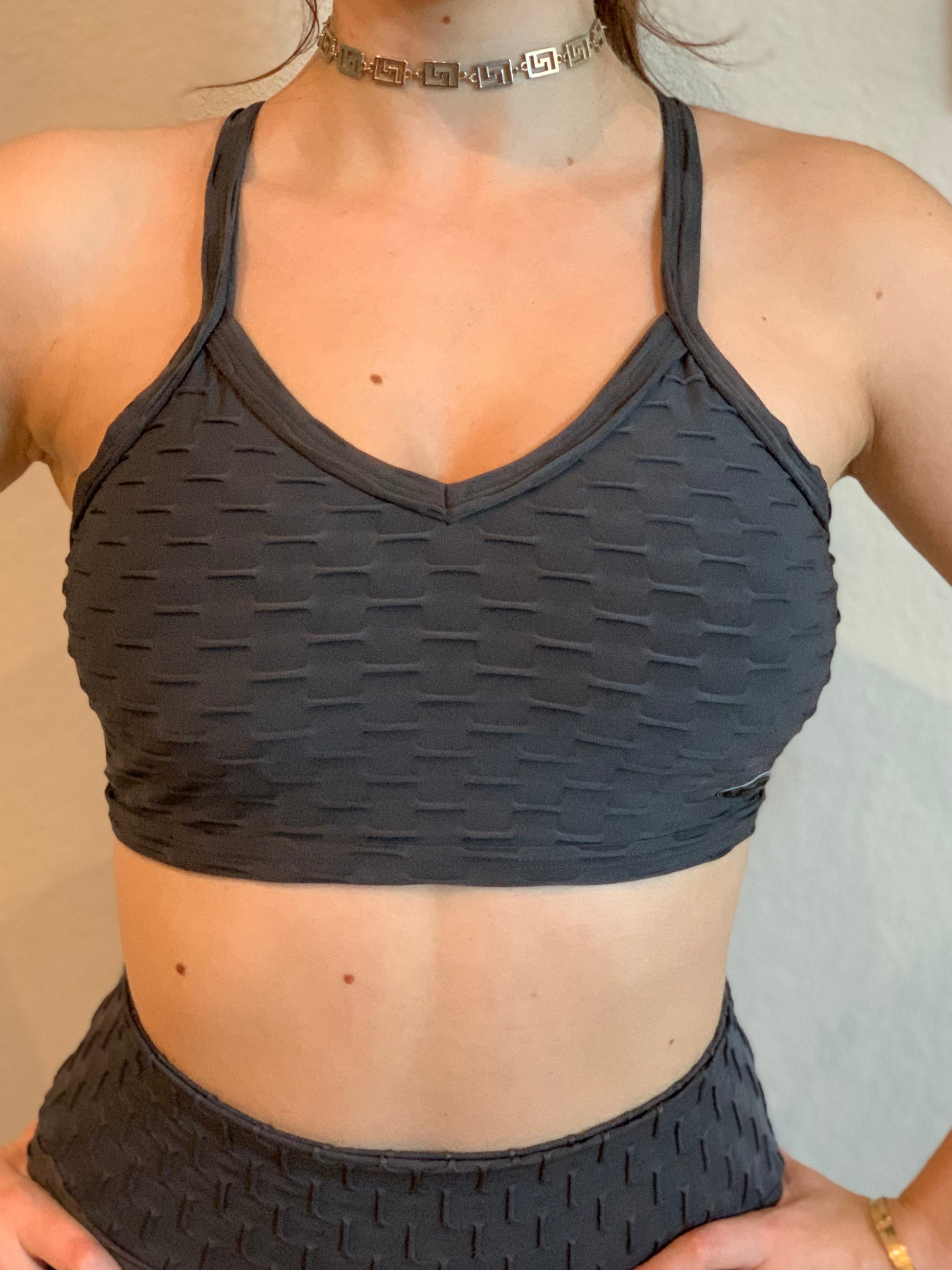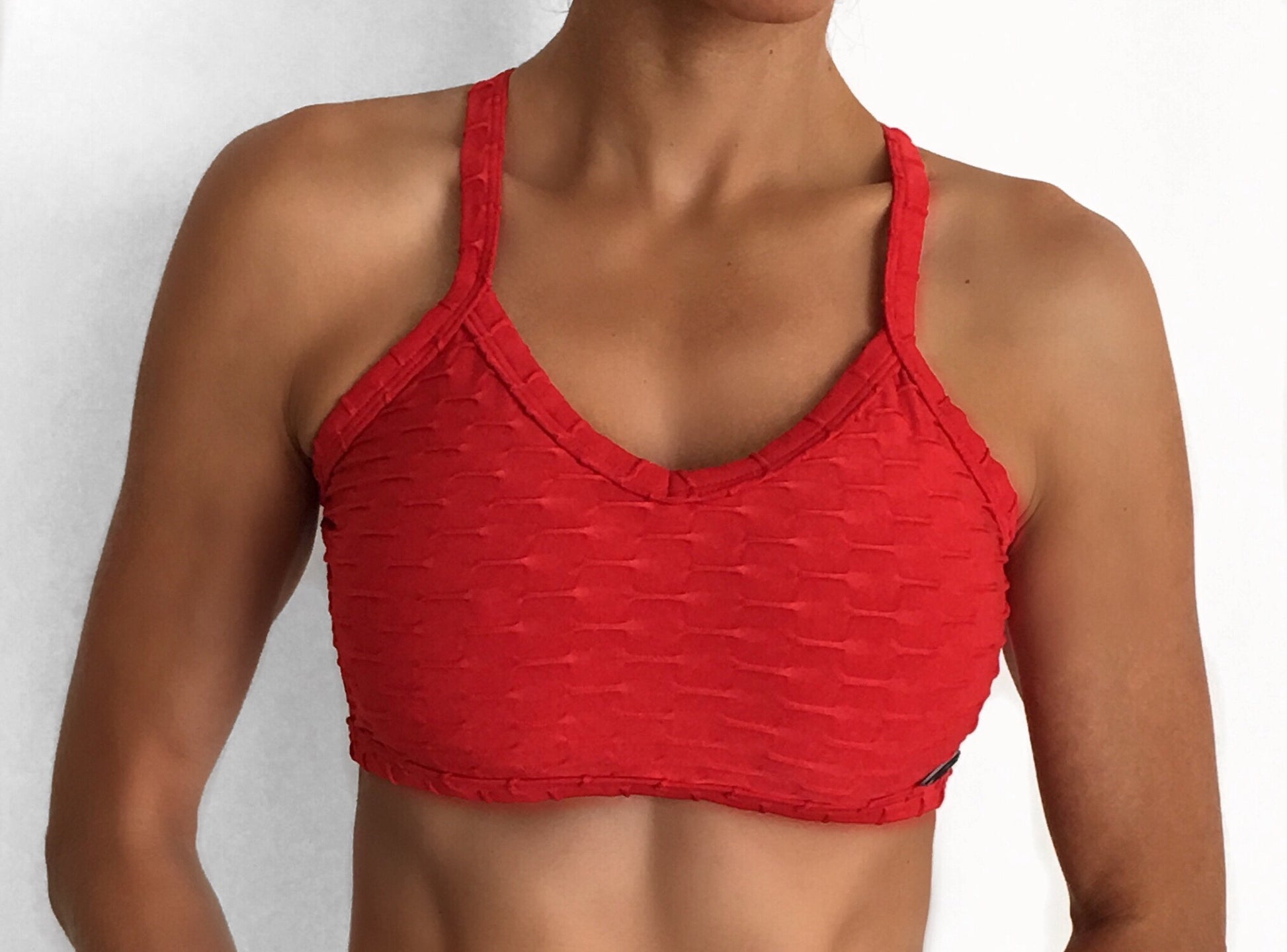 Strapped back cropped top made in Honeycomb Fabric